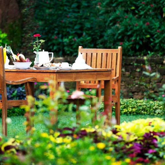 We encourage guests to experience High Tea comprising an array of savoury and sweet delights accompanied by a choice of pure Sri Lankan grown coffee or tea outdoors in the garden. You can also opt to dine indoors or outdoors anywhere within the property for a more scenic meal time. (We do not offer buffets but invite guests to try a la carte or set menus)