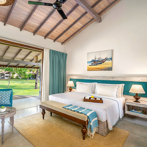 The tranquil surroundings overlook perfectly manicured gardens leading up to sandy shores and turquoise waters. Embrace the classical architectural style of a typical Sri Lankan manor house with chic, contemporary décor inspired by tropical charm when you stay at The Villas.